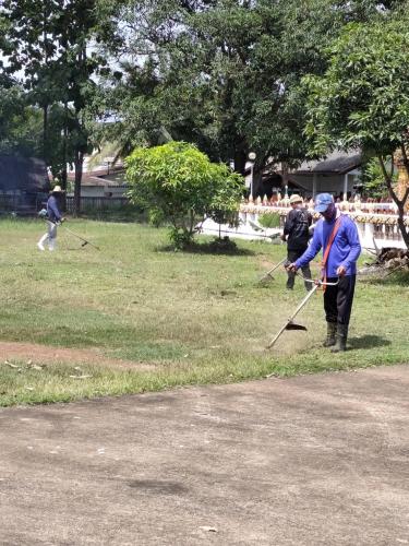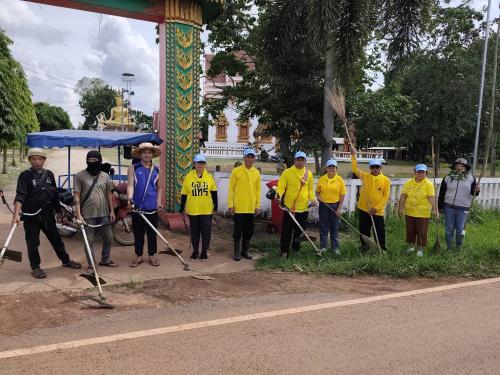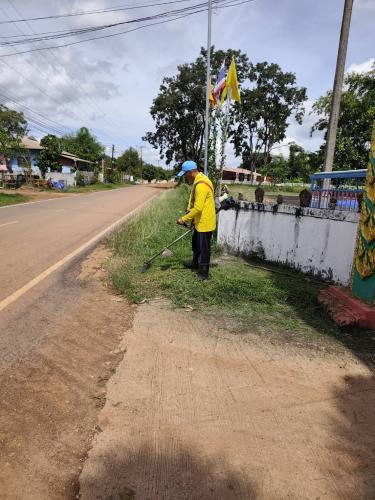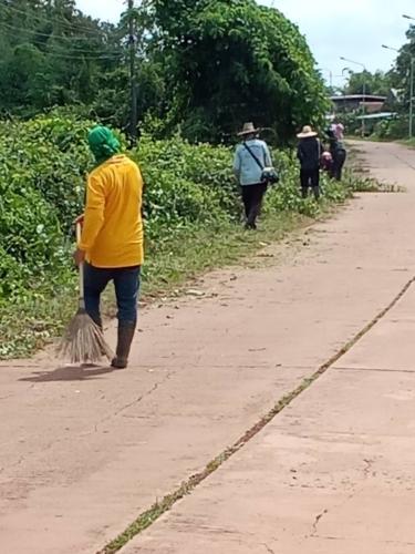 บ้านหายโศกหมู่ที่ 2 ตำบลนาสะอาด ร่วมทำความสะอาดโดยตัดหญ้ากิ่งไม้ตามถนนรอบหมู่บ้านและสถานที่วัดมีจิตอาสาผู้นำชุมชนพร้อมชาวบ้าน