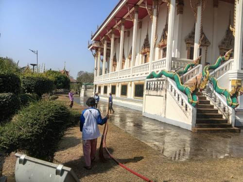 กิจกรรมจิตอาสาทำความสะอาดวัดศรีสำราญ ม.7 ต.บ้านโคก อ.สร้างคอม จ.อุดรธานี จำนวน 40 คน